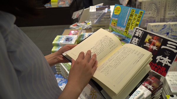 日本讀者在書店翻看《三體》。來源:視頻截圖
