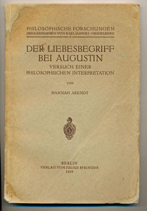 漢娜·阿倫特1929年在她的導師,著名存在主義哲學家雅斯貝爾斯指導下完成了博士論文《奧古斯丁的愛的概念》(Der Liebesbegriff bei Augustin),這是她登上學術舞臺的首部著作,1929年由施普林格出版社在柏林出版。受她政治思想吸引的的研究者們很少注意到這部以神學為主題的作品,但在奧古斯丁學界,她大膽挑戰(zhàn)這位教父權威的觀點卻不時受到關注。其實阿倫特跟她的另一位著名導師海德格爾一樣,都是從神學轉向了哲學研究。阿倫特十六歲就讀過康德的《純粹理性批判》和《理性界限內的宗教》,她高中從文科中學退學后,先在柏林大學旁聽了幾個學期。在那里,天主教存在主義神學家羅曼諾·瓜爾蒂尼(Romano Guardini)的神學課吸引了她,接著她醉心于丹麥神學家和哲學家克爾凱郭爾的著作,從而做出了主修神學的決定。1924年她提前一年通過了中學畢業(yè)會考獲得大學入學資格,進入了馬堡大學。阿倫特在馬堡期間也選修過德國神學家魯?shù)婪颉げ紶柼芈≧udolf Bultmann)的新約神學課程,布爾特曼以對“新約的非神話化”研究著稱。不過阿倫特很快就放棄了神學,轉而跟隨海德格爾和雅斯貝爾斯所引領的哲學批判潮流。