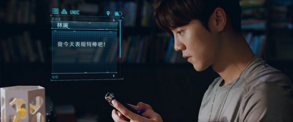 再如電影中江洋與林瀾的愛情,通過一條遲到五年的短信體現(xiàn)。小說中之所以用短信,是因為江南寫作那個年代是短信的年代??伞渡虾1尽吩O(shè)定在未來,電影中的許多技術(shù)都是超未來的,路依依拿的一個手機(jī)是全屏透明狀的,但偏偏江洋依舊拿著老人機(jī)款式的手機(jī),用短信聊天??尚哦仍谀睦??