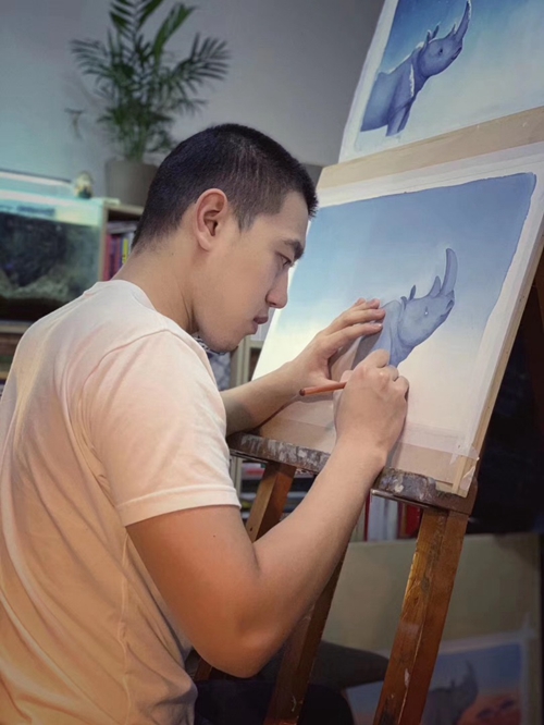 他從三歲起學習繪畫,兒時父母工作很忙,但只要有畫筆,他就可以安靜地畫一整天,并沉浸在自己創(chuàng)造的故事中。他說,這種用繪畫講故事的熱情一直延續(xù)至今。