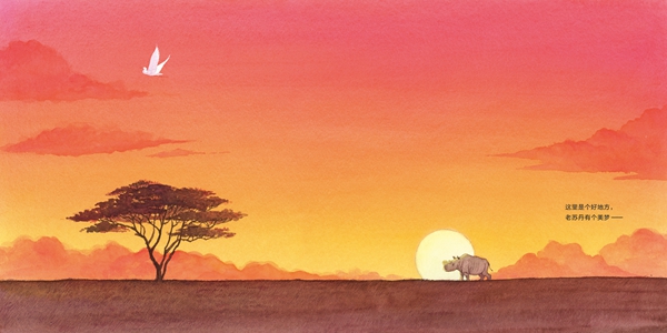 我們身邊總有很多人陪伴我們走了一段路便消失了,帶著這份對奶奶的告別的遺憾,我立即開始畫繪本的分鏡和故事板,那時候雖然白天工作很辛苦,但是晚上我依舊很努力地畫。直到我加薪了。加薪意味著工作增多,我那時候早上6點起床去央美代課,中午回到公司工作,完成工作的時候,我已經(jīng)筋疲力盡,想到又停滯的《蘇丹的犀角》,內(nèi)心總是不舒服,只是祈禱著它千萬不要去世,因為我和作者都約定要在蘇丹去世前把繪本作為它離別的禮物。強度工作了一段時間,突然收到蘇丹去世的消息,那時候我正在加班,腦袋一片空白。