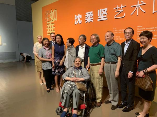 展覽開幕式合影,中為沈柔堅妻子王慕蘭