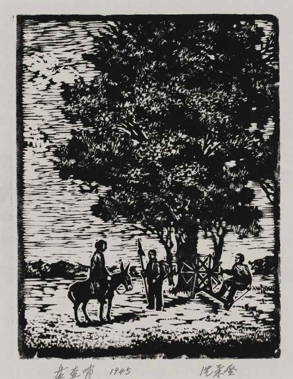 沈柔堅在1938 年參加新四軍后開始從事美術創(chuàng)作,次年在皖南任新四軍戰(zhàn)地服務團繪畫組組長,之后先后任抗日軍政大學文化科科長、《新知識》雜志編委等職,創(chuàng)作了一批木版畫作品??箲?zhàn)勝利后,任山東省文化協(xié)會美術記者,創(chuàng)作了《盤查哨》《軍民同樂》《學文化》《慶功圖》《立功榮歸》《全力支持前線》等石版年畫和木版畫。其中《田野》《拾草》和《盤查哨》三件作品被法國軍事博物館征集收藏。