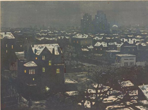 在展覽中,《上海展覽館》《浦江夕照》和《雪后》勾起了很多人的上海記憶,作于1957年的《雪后》畫家以寧靜抒情的雪夜表現(xiàn)美好的意愿。寒冷之夜中卻透著人性的溫暖,如同聽到了畫家的獨白和夜的歌曲。展覽還將多件版畫和繪畫作品并列展陳,從其中也可以看出多個畫種的繪畫語言是如何互相影響和借鑒。