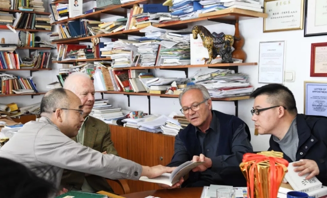 當(dāng)天上午,中國(guó)作協(xié)代表團(tuán)一行還拜訪了奧地利著名漢學(xué)家、奧中友協(xié)常務(wù)副主席格爾德·卡明斯基教授(Prof. Gerd Kaminski),奧地利八棵芭出版社社長(zhǎng)瓦爾特·菲林格碩士會(huì)見(jiàn)時(shí)在座。雙方就中奧文化交流、出版合作等問(wèn)題進(jìn)行了務(wù)實(shí)交流,彼此就未來(lái)可能的合作項(xiàng)目表達(dá)了初步意向。