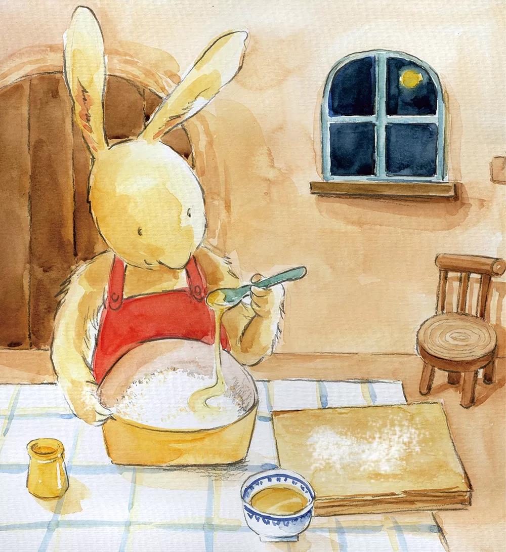 故事情節(jié)輕松活潑、主人公形象軟萌可愛。用文字、畫面雙線的敘事結(jié)構(gòu),講述了兔媽媽收集材料,為小兔子們制作月餅過中秋,也畫出了大野狼先生盼望過節(jié)的心路歷程。構(gòu)思巧妙,頗有新意。