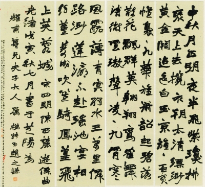 趙之謙《中秋詩》四條屏,每條縱145厘米,橫37.5厘米。
