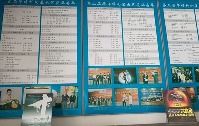 首屆至三屆獲獎名單展板(時光幻象科幻博物館供圖)