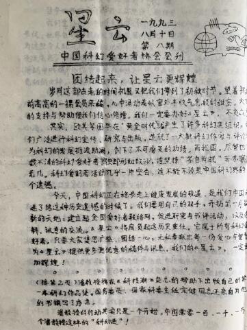 姚海軍創(chuàng)辦的《星云》第八期(1993年8月10日)