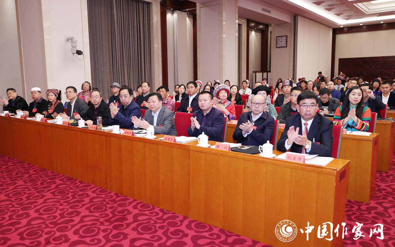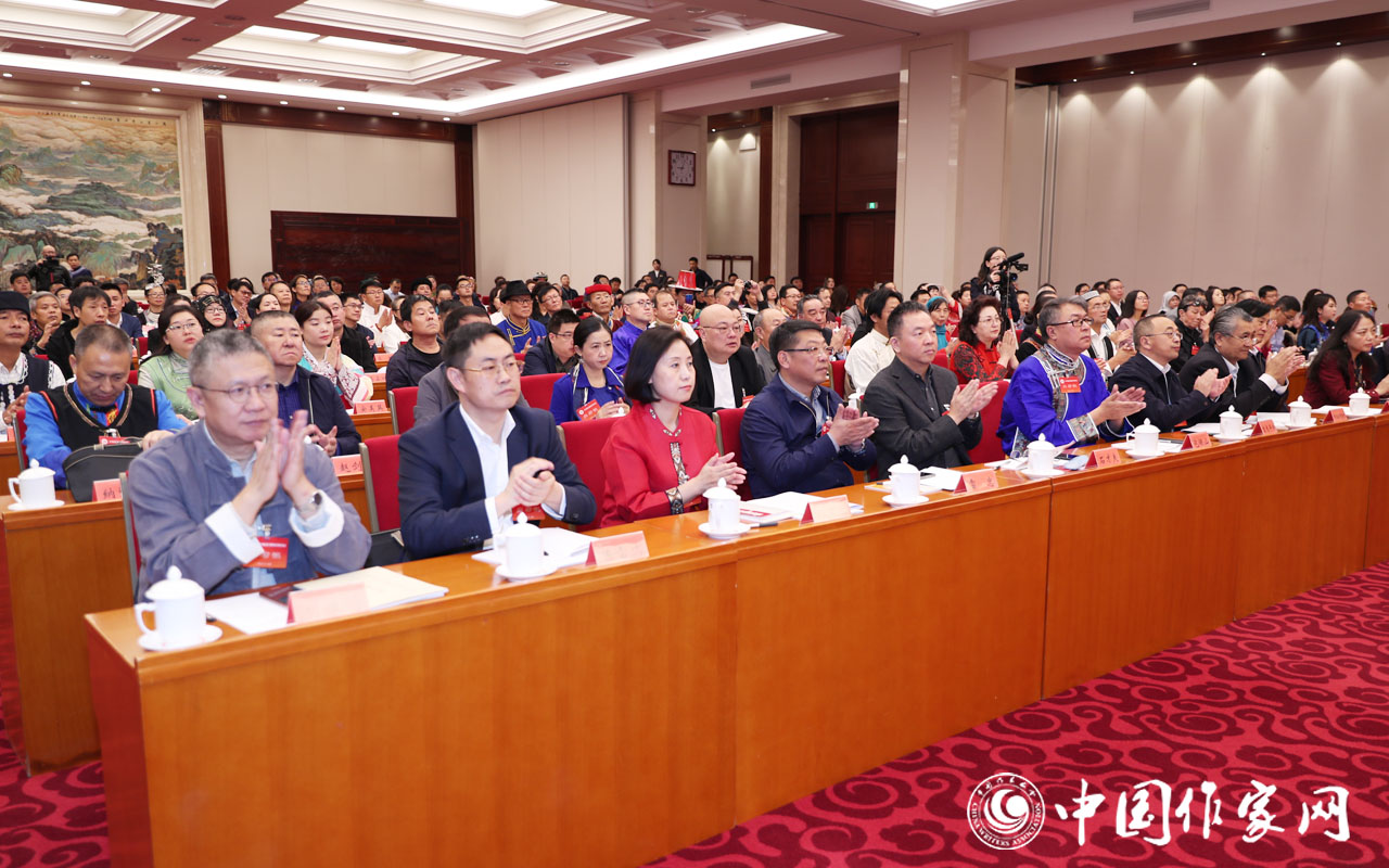 郭衛(wèi)平在致辭中說,多年來,廣大少數(shù)民族作家潛心耕耘、用心書寫,傳承文化、頌揚時代,為促進各民族交往交流交融、構(gòu)建各民族共有精神家園、推動民族團結(jié)進步事業(yè)創(chuàng)新發(fā)展作出了貢獻。中國特色社會主義進入新時代。站在新的起點,面對新的使命,少數(shù)民族文學(xué)事業(yè)迎來新的發(fā)展機遇。我們要堅持以習(xí)近平新時代中國特色社會主義思想為指導(dǎo),堅持鑄牢中華民族共同體意識。要堅持以人民為中心的創(chuàng)作導(dǎo)向,深入生活、扎根人民,用心去體察,用情去書寫,用力去勞作,創(chuàng)造更多具有民族特色、群眾喜愛的作品,讓少數(shù)民族文學(xué)之樹枝繁葉茂、永葆長青。讓我們更加緊密團結(jié)在以習(xí)近平同志為核心的黨中央周圍,樹牢“四個意識”,堅定“四個自信”,做到“兩個維護”,為促進民族團結(jié)進步事業(yè)、建設(shè)社會主義文化強國而不懈努力。國家民委將一如既往地支持少數(shù)民族文學(xué)事業(yè)發(fā)展,加大對優(yōu)秀民族文學(xué)作品的宣傳和推廣,努力為少數(shù)民族文學(xué)創(chuàng)作搭建更多平臺,營造良好氛圍。
