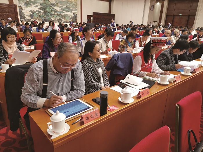 西藏文聯(lián)主席扎西達(dá)娃參加過(guò)五次全國(guó)少數(shù)民族文學(xué)創(chuàng)作會(huì)議,他說(shuō),從當(dāng)年的文學(xué)新人到現(xiàn)在的作協(xié)主席,從當(dāng)年的普通代表到今天的領(lǐng)隊(duì),他親歷和見證了30多年來(lái)中國(guó)少數(shù)民族文學(xué)創(chuàng)作的發(fā)展歷程。這次會(huì)議的主題和氛圍給他最大的感受是:從以往注重和強(qiáng)調(diào)各少數(shù)民族文學(xué)單一族群敘事低吟淺唱的獨(dú)奏曲,到今天匯聚成唱響中華民族大團(tuán)結(jié)、促進(jìn)各民族交往交流交融、構(gòu)筑中華民族共有精神家園的宏大合唱和交響樂章。這是新時(shí)代的文學(xué),更是中國(guó)夢(mèng)的寄托。從各民族代表一張張年輕的臉龐中,能感受到他們的青春陽(yáng)光,感受到少數(shù)民族作家隊(duì)伍在不斷壯大和成長(zhǎng)。改革開放40年,特別是黨的十八大以來(lái),我國(guó)少數(shù)民族文學(xué)事業(yè)撐起了中國(guó)文學(xué)風(fēng)景的一片高地,但文學(xué)之巔,山高路險(xiǎn),我們?nèi)孕枧?,團(tuán)結(jié)各民族作家,共筑中國(guó)文學(xué)輝煌的高峰。