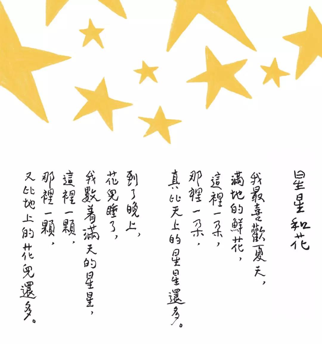 就在那一次座談會(huì)上,他大膽地發(fā)言。他問我:“爺爺,請(qǐng)你告訴我,到底是天上的星星多呢,還是地上的花兒多呢?”我知道,他是讀了我的一首短詩,才這樣發(fā)問的。我的那首詩,題目是《星星和花》,詩里有這樣的句子: