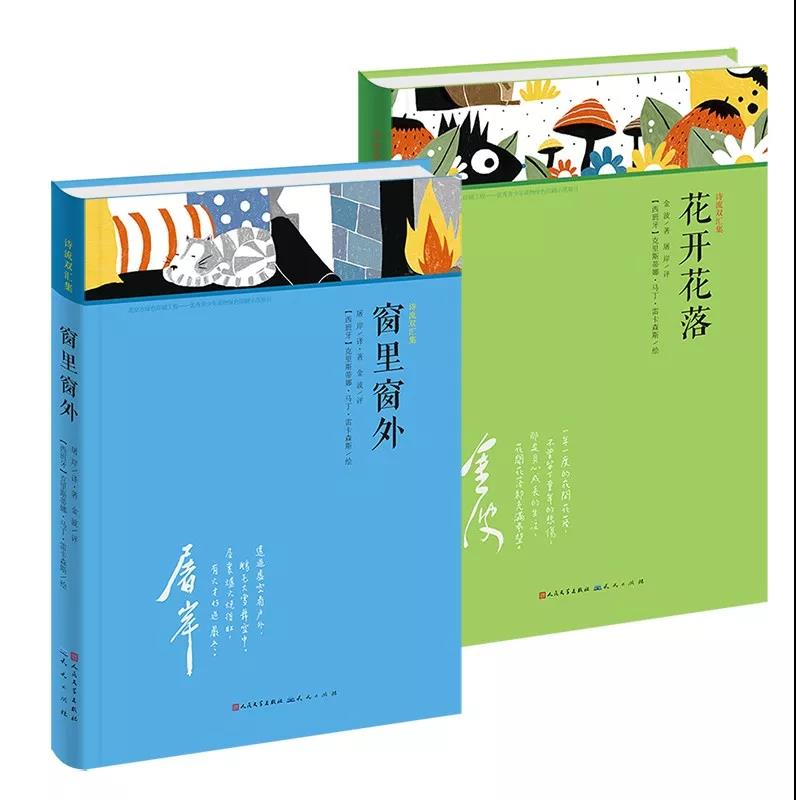 收錄入金波與屠岸二位先生創(chuàng)作、翻譯及互評(píng)合集《詩流雙匯集》,書中101首詩皆附有如圖手稿,西班牙插畫家克里斯蒂娜配插畫。