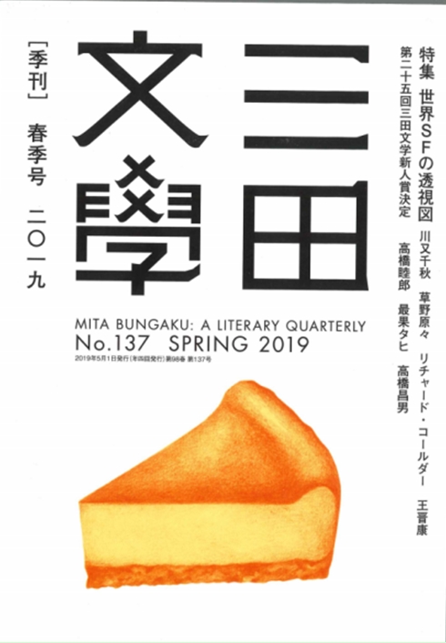巽孝之:這次發(fā)表在《三田文學》2019年春季刊(137期)“世界科幻透視圖”專輯上的《天火》是請泊老師翻譯的,當時多蒙關(guān)照。在日本的所謂純文學文藝雜志上刊登科幻專輯這樣的事情以前也有過幾次,在我負責主編的《新潮》1990年第9期“現(xiàn)代科幻的冒險”專輯之后再次正式做科幻專輯,差不多過去30年了。當時在《新潮》上除了J?G?巴拉德的新作,還翻譯了菲利普?K?迪克、斯塔尼斯拉夫?萊姆、伊塔洛?卡爾維諾以及當時嶄露頭角的理查德?考爾德、康妮?威利斯等人的作品,選的主要是歐美的作家。當時賽博朋克很流行,被認為是最先鋒的東西,諾貝爾文學獎候選人大江健三郎先生也開始寫科幻,所以專輯得以編成。30多年過去了,現(xiàn)在要在純文學雜志上做科幻專輯,歐美自不必說,中國科幻也必須納入考慮范圍。日本方面,川又千秋老師和草野原原老師也寄來了篇幅限制在20頁以內(nèi)的短篇。除了研究俄羅斯東歐文學的沼野老師、研究法國文學的新島進老師和研究德國文學的識名老師,座談會還邀請了立原老師參加,大家就現(xiàn)在世界科幻的透視圖展開了討論。