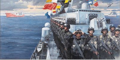 進入21世紀,軍事題材美術創(chuàng)作在“熔鑄中國氣派,塑造國家形象”的中國美術實踐中扮演了重要角色。尤其是黨的十八大以來,涌現(xiàn)出一批表現(xiàn)我軍履行新任務、新使命的作品,如李如油畫《亞丁灣護航》、李翔中國畫《南海·南?!返取_@些極具時代特色、凸顯中國軍人保家衛(wèi)國堅定信念的作品,讓觀眾看到了維護祖國統(tǒng)一、世界和平的堅強后盾。