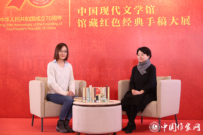 《光明日?qǐng)?bào)》記者饒翔(右)與中國(guó)現(xiàn)代文學(xué)館館員王雪(左)談柳青《創(chuàng)業(yè)史》