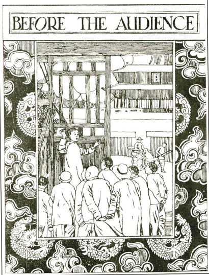 1921年聞一多擔(dān)任《清華年刊》美術(shù)編輯期間創(chuàng)作的插畫,圖片上方是 “BEFORE THE AUDIENCE”(面對聽眾)
