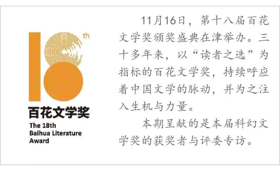 問:本屆百花文學(xué)獎(jiǎng)首次設(shè)立了科幻文學(xué)獎(jiǎng),作為這一獎(jiǎng)項(xiàng)的首屆獲獎(jiǎng)?wù)?,您有何感想?/strong>