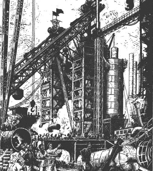 鞍山煉鐵爐之修復(fù) 古元 作 發(fā)表于《人民文學(xué)》1949年第1期