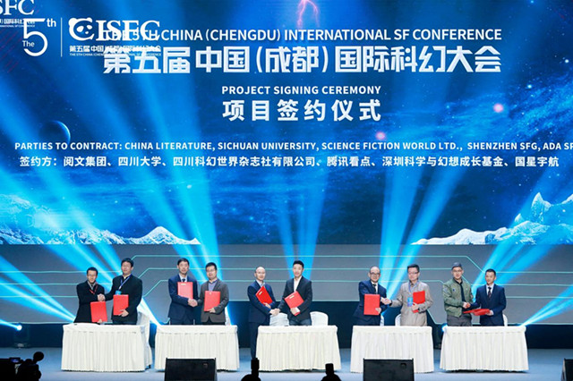 11月22日,以“多元幻想,多彩未來”為主題的第五屆中國(成都)國際科幻大會在成都召開。本次科幻盛宴為期三天,包括“2019科幻高峰會議暨亞洲科幻會議”、“銀河之夜”頒獎盛典、科幻主題系列巡展及40余場行業(yè)高峰論壇談,全面展示了以科幻文學為源頭的中國科幻產(chǎn)業(yè)發(fā)展現(xiàn)狀及未來趨勢。與往屆會議相比,本屆大會更注重科幻事業(yè)的“國際化”、“產(chǎn)業(yè)化”發(fā)展,邀請了來自14個國家的近60位國際嘉賓、300余位中國知名科幻作家、相關(guān)學者及產(chǎn)業(yè)精英共同出席。閱文集團作為此次大會的重要合作伙伴,在科幻文學培育、出版、IP運營開發(fā)等方面與會議主辦方達成深度戰(zhàn)略合作,同時旗下作家連續(xù)三年摘得科幻最高獎“銀河獎”桂冠,依托平臺力量進一步推動以文學為代表的科幻作品向精品化、主流化不斷邁進。