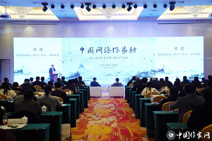 12月9日,由杭州高新區(qū)(濱江)宣傳部、區(qū)文創(chuàng)發(fā)展中心、杭州白馬湖生態(tài)創(chuàng)意城管委會主辦的中國網(wǎng)絡作家村第二次村民大會暨“村民日”活動在杭州舉行。中國作協(xié)網(wǎng)絡文學委員會主任、中國網(wǎng)絡作家村名譽村長陳崎嶸,中國作協(xié)網(wǎng)絡文學中心主任何弘,浙江省作協(xié)黨組書記、副主席臧軍,浙江省作協(xié)黨組副書記曹啟文,杭州市委宣傳部副部長應雪林,杭州市文聯(lián)黨組書記汪華瑛,杭州高新區(qū)(濱江)區(qū)委副書記李志龍出席開幕式,中國作協(xié)網(wǎng)絡文學中心研究員肖驚鴻,知名網(wǎng)絡文學作家、中國網(wǎng)絡作家村村長唐家三少,以及來自全國各地的網(wǎng)絡作家、中國網(wǎng)絡作家村戰(zhàn)略合作單位、網(wǎng)絡文學相關(guān)產(chǎn)業(yè)代表、“首屆在杭大學生網(wǎng)絡小說大賽”獲獎者共200多人參加活動。開幕式由杭州高新區(qū)(濱江)常委、宣傳部長沈建主持。