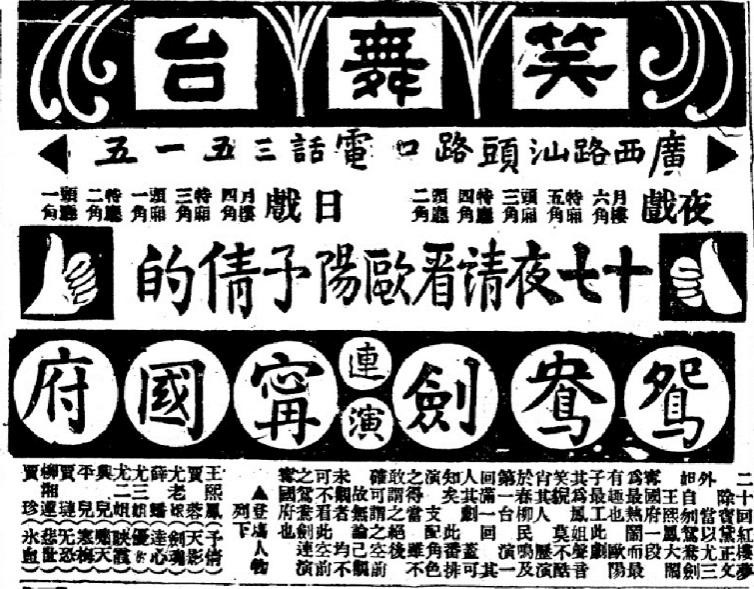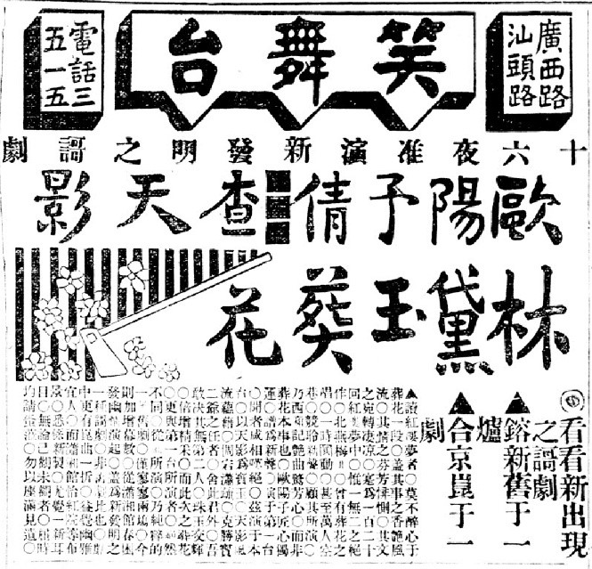 歐陽(yáng)予倩在笑舞臺(tái)演出“紅樓”劇的廣告兩則