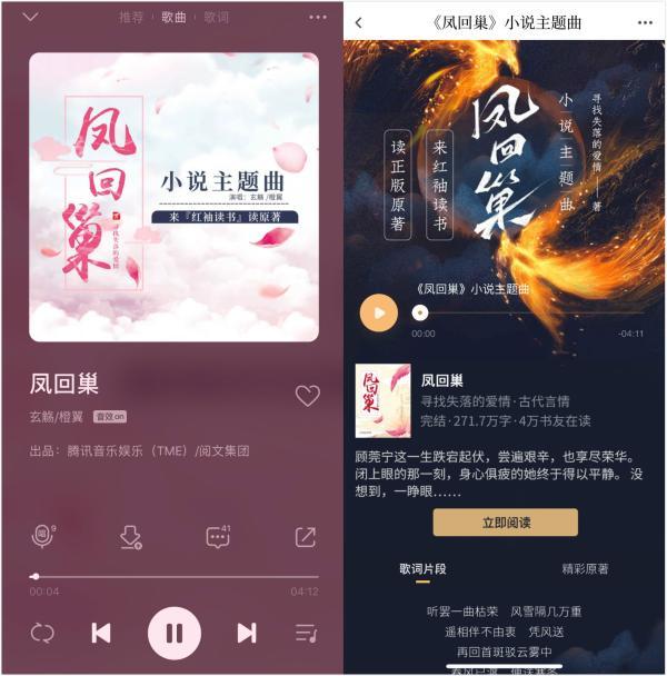 12月27日,《鳳回巢》小說主題曲在QQ音樂、酷狗音樂、酷我音樂三大平臺上線,此首主題曲以古風(fēng)音樂旋律詮釋了《鳳回巢》原著的精神內(nèi)核。