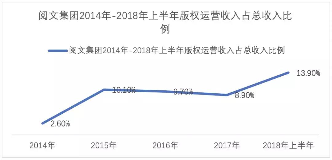 除此之外,版權(quán)收入在總收入中的占比也從2014年的2.6%增長(zhǎng)至2015年的10.1%。雖然2016年、2017年的占比有所下降,但僅在2018年的上半年,版權(quán)運(yùn)營收入就達(dá)到了占比13.9%,呈現(xiàn)增長(zhǎng)回歸趨勢(shì)。