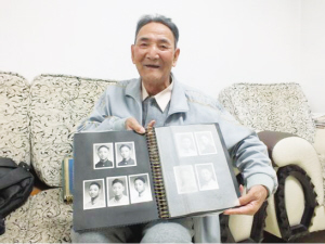 楊光海展示其在子雄攝影室時的留影(2013年)。謝春波提供