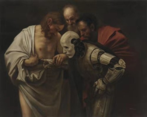 本次展覽的諸多作品可謂是古典藝術的“副本”。龐茂琨說:“許多年來,我從未刻意回避古典藝術,相反,我對它有著一種眷念,這種眷念一方面是出于對風格、圖像的個人喜好,另一方面,是因為我曾經堅信人類一直活在歷史之中,未來也總是在歷史中徐徐展開?!?/p>