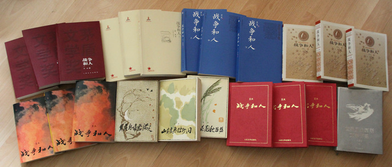 王火知道我此行來意,提前將所有不同版本的著作清理出來擺在地上,目測約有近百種,看起來很有陣勢。他蹲下來為我逐一介紹《戰(zhàn)爭和人》的不同版本,我心頭一陣感動,這并非炫耀,而是一個作家畢生心血的展示。