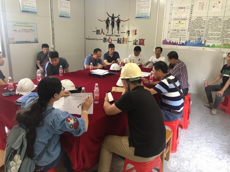 說明:作者與建筑工地安全生產(chǎn)管理人員一起商討排除隱患措施。