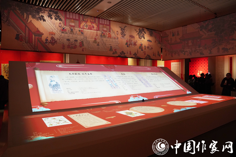 展覽在利用展板展出春節(jié)習俗的同時,還為我國傳統(tǒng)非遺技藝助力添彩,將衡水剪紙、姑蘇年畫、楊柳青年畫、北京剪紙等優(yōu)秀作品薈聚一堂,并與國家圖書館館藏40余種經(jīng)典文獻相結(jié)合,引發(fā)深埋在普通大眾心底的年味印記,共賞中華非遺技藝的傳承之美。國家典籍博物館第四展廳展出了書法、花鳥畫、民間傳說等主題的衡水剪紙40余件。衡水剪紙相傳始于西漢,當?shù)赜凭玫臍v史和厚重的文化造就了衡水獨具特色的民俗剪紙藝術,并經(jīng)過不斷的發(fā)展完善和改革創(chuàng)新,形成了以傳統(tǒng)中國繪畫為基礎,并保持了寫意、工筆等諸多表現(xiàn)方式的獨特藝術風格。展廳中心的巨型多媒體投影則輪播全國各地各個流派的年畫精品,與周圍的衡水剪紙、柜中展品交相輝映。為拓展年味展示空間,展覽還在第三展廳設置單獨區(qū)域,展出由翁連溪、劉禹、金亮、謝呈波、馮德寶、賈陽等私人藏家提供的珍貴姑蘇年畫等10余件,劉韌剪紙工作室提供的北京剪紙40余件,以及楊柳青年畫社提供的10余件楊柳青年畫等新春題材作品,在多彩多姿的年畫、剪紙與溫馨雅致的書香中,營造出鮮明的節(jié)日氛圍,為觀眾帶來年味十足的新春文化盛宴。