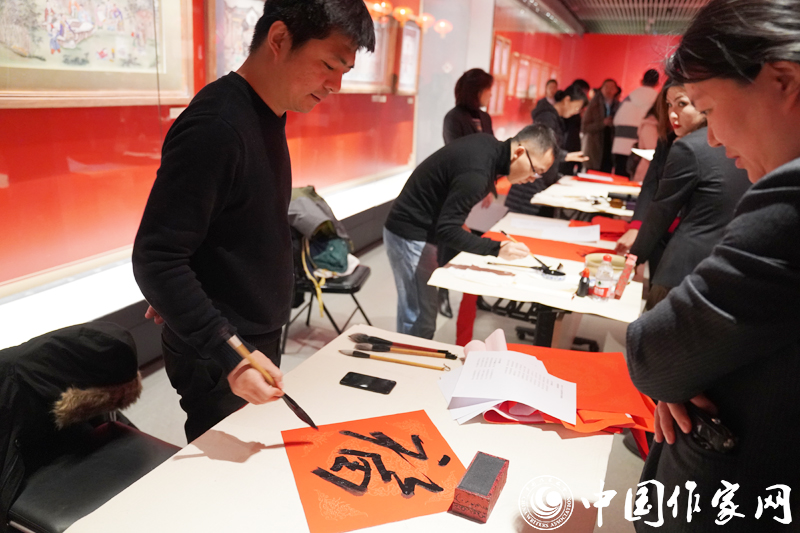 藝術家為觀眾現(xiàn)場題寫春聯(lián)和福字