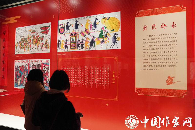 據(jù)主辦方介紹,此次展覽以“書香盈歲月 新桃換舊符”為主題,用圖文結(jié)合的形式“鼠年說鼠”,介紹了生肖與干支的來歷,并選取“鼠王傳說”“老鼠娶親”等傳說故事,讓大家了解民間豐富的祀鼠活動,展示了人民群眾浪漫的想象力以及除舊布新、祛災納吉的美好愿望;展覽還通過年畫、年俗傳說等內(nèi)容,簡要概述了小年、除夕、正月初一、元宵節(jié)等重要節(jié)點的慶歲風俗,同時在其中穿插應景的詩句,生動地呈現(xiàn)了古人賀歲慶年的情景,古今輝映。