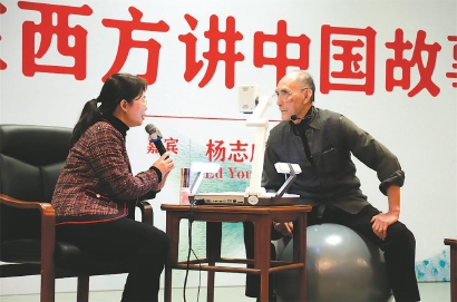 楊志成先生坐在健身球上與本文作者對(duì)談。