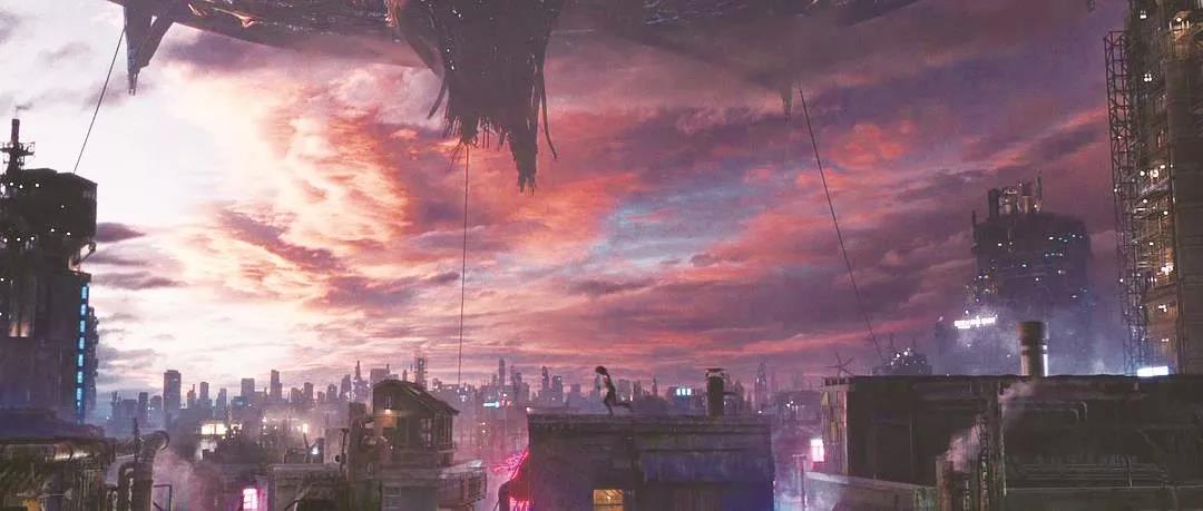 除了腦機接口之外,在影片的前期,另一個同屬“高難度捷徑”的科技概念,同樣以鏡頭語言直接傳達了出來——任何對科學或科幻有所涉獵的觀眾,都不難看出,那個懸浮在眾人頭上天空之城“薩雷姆(Zalem)”,實際上就是一部太空電梯的地面殘端。