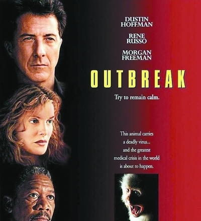 另一部不錯(cuò)的影片是《恐怖地帶》(1995):美國(guó)科學(xué)家在非洲發(fā)現(xiàn)一種病毒,它使人染病,好在不通過(guò)空氣傳播;與此同時(shí),一名美國(guó)青年捉到一只猴子,并把它走私回美國(guó)。不料猴子身攜病毒,并把它從一塊大陸傳播到另一塊大陸。病毒赴美后發(fā)生變異,可以通過(guò)空氣傳播!此時(shí)唯一的辦法,就是找到病毒的原始攜帶者……