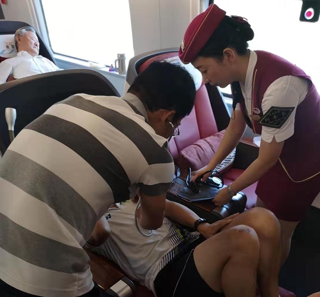 作家黃開建采訪G21復興號車組人員在搶救患病旅客