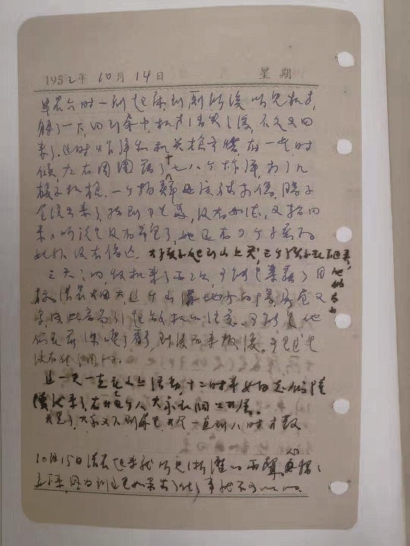讀《靳以日記書信集》,是對文學(xué)史現(xiàn)場的一次重返和勘探,如章潔思所說,這是一個(gè)時(shí)代知識(shí)分子的寫照?!督匀沼洉偶贩譃槿?,收錄《赴朝日記》《佛子嶺日記》《入川日記》《東北旅行日記》和《訪蘇日記》,書信159封,序跋30篇。這是目前最為完備的靳以在小說、散文之外的“副文本”結(jié)集。這些日記、書信和序跋中,反映了靳以從1928年發(fā)表處女作開始后的文學(xué)活動(dòng)、社會(huì)活動(dòng)和親友往來等細(xì)節(jié),特別是靳以作為一個(gè)作家和編輯家由20世紀(jì)30年代到50年代的思想、生活、創(chuàng)作和編輯等方面有了場景式的呈現(xiàn)。章潔思在整理、編輯這些日記、書信和序跋時(shí),既融入身為女兒的感情,又顯示了作為整理者在學(xué)術(shù)上的嚴(yán)謹(jǐn)。在談到日記整理時(shí),章潔思說:“由于年深日久,活頁紙上有的筆跡已經(jīng)洇開了,但我順著父親的筆跡跟著父親的腳印進(jìn)入他的生活,與他一起經(jīng)歷、感受、感嘆、歡笑……覺得無比幸福。父親的日記純粹是寫給他自己的,所以往往是字跡潦草,尤其是外文,不按規(guī)則省略,可是,正因?yàn)榇?,我更感親切。我跟著父親去了朝鮮,仿佛聽到炮火的轟鳴。我跟著父親去了佛子嶺,與他一起欣喜地看到佛子嶺的曙光。我跟著父親回到我的出生地重慶夏壩,看到了我們曾經(jīng)避過洪水的高院子馬宗融先生的家?!北緯戒浿姓聺嵥妓钠嚓P(guān)文章有助于我們閱讀和理解靳以的書信和日記,而她整理的《靳以年譜》簡潔而詳實(shí),可以和日記、書信參照閱讀。為了體現(xiàn)文獻(xiàn)的真實(shí)性,章潔思整理的日記和靳以的日記手稿并列,又穿插了與日記相關(guān)的散文。章潔思對靳以的書信也做了必要的注釋和考訂。如果從上世紀(jì)90年代末收集書信開始算起,章潔思整理、編輯和出版《靳以日記書信集》幾乎用了20年時(shí)間,我們可以想象其中的艱辛與歡樂。這個(gè)過程是章潔思和他父親的一次長久的對話。