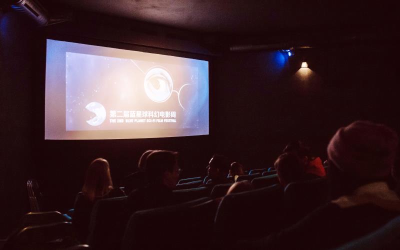 圖為來賓在欣賞首屆藍星球獲獎影片展映。(新華網(wǎng)發(fā),亞妮娜·艾絲拉攝)