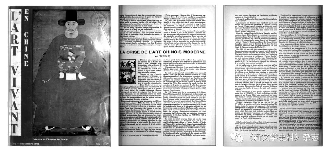 雜志的開本不算大,跟普通圖書差不多,傅雷的文章占去20頁。標(biāo)題很形象,《十字路口的中國》(La Chine au carrefour),作者身份“中華留法藝術(shù)協(xié)會秘書”。編輯為他的文章撰寫了一段提要:
