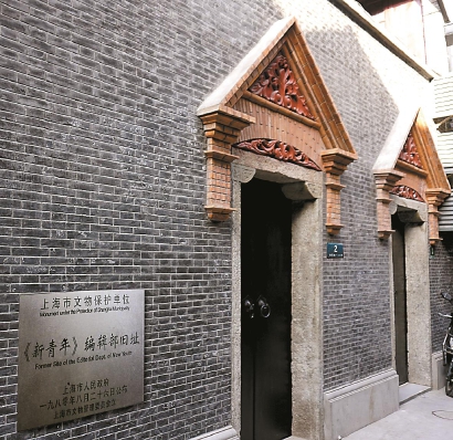 《新青年》(第一期刊名為《青年雜志》)于1915年9月15日在滬創(chuàng)刊,由陳獨(dú)秀主編,上海群益書社發(fā)行。陳獨(dú)秀此時(shí)寓居上海嵩山路南口吉益里(今太倉路119弄)21號(hào)(原建筑已不存),這里也即編輯部。以《新青年》問世為標(biāo)志,對(duì)中國現(xiàn)代歷史進(jìn)程具有重要影響的新文化運(yùn)動(dòng)興起。