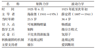 不過,并非每一場物理革命都適合畫成圖解,所以我有時會用表格來呈現(xiàn)。比方說,講到量子物理的發(fā)展史,很多人都知道在1925年出現(xiàn)了重大突破,催生出量子力學這門學問。嚴格來說,這個重大突破是由兩場革命組成的,但由于兩者時間很近,容易讓人混淆,所以我決定用表格做些詳細的對照。例如,海森堡和薛定諤是量子力學的創(chuàng)始人,通常我們總會覺得兩人是同輩,但只要查一下年齡,你就會發(fā)現(xiàn)他們至少差了半個輩分。而且他倆的切入點非常不一樣,使用的數(shù)學工具也是南轅北轍。更有趣的是兩人背后各有一位大神級的支持者,分別是玻爾和愛因斯坦。