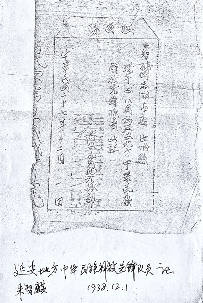 中國(guó)抗日軍政大學(xué)政治對(duì)朱子奇的委任令