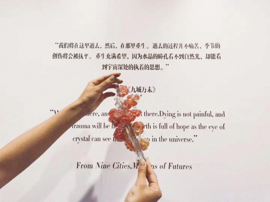 我們的作品主要是在吳巖老師提供的敘事框架上發(fā)展而來的,我們希望把無名之城延伸為一個系列,討論的時候也提出了許多種不同的城市構想,最終反復篩選提煉,確定了這四件作品。就具體形態(tài)而言,由于自己平時看一些雜七雜八的圖書,比如自然攝影,生物解剖等等。所以在創(chuàng)作中也受到了自然當中比如海藻、深海生物、結晶體等一系列原型的影響。比如在樹城當中,我們希望展現(xiàn)的是以一種類似樹的循環(huán)機制來運作的城市,在循環(huán)的大小網(wǎng)絡上架構生活空間,最后產(chǎn)生了一種繁復的形態(tài)。這件作品就像《九城萬未》一樣,它是對于未來人類與城市、城市與地球發(fā)展的一種暢想,傳達給觀眾的是未來城市的可能性,一種在當下可能非常規(guī),但在未來或許是常態(tài)的可能性。就我個人而言,當代深受工業(yè)文明影響的城市對環(huán)境造成了不可逆的改變,那么在未來,由生物啟發(fā)的城市文明是否能帶來一些改變呢?能否用新的規(guī)則,新的共生關系來構建城市呢?