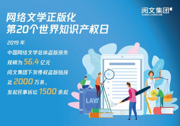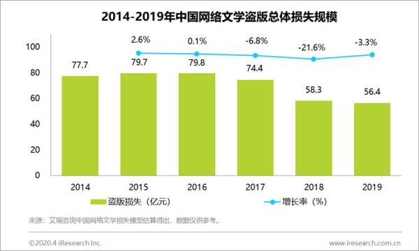 閱文集團(tuán)的相關(guān)研究報(bào)告顯示,2019年中國(guó)網(wǎng)絡(luò)文學(xué)總體盜版損失規(guī)模為56.4億元