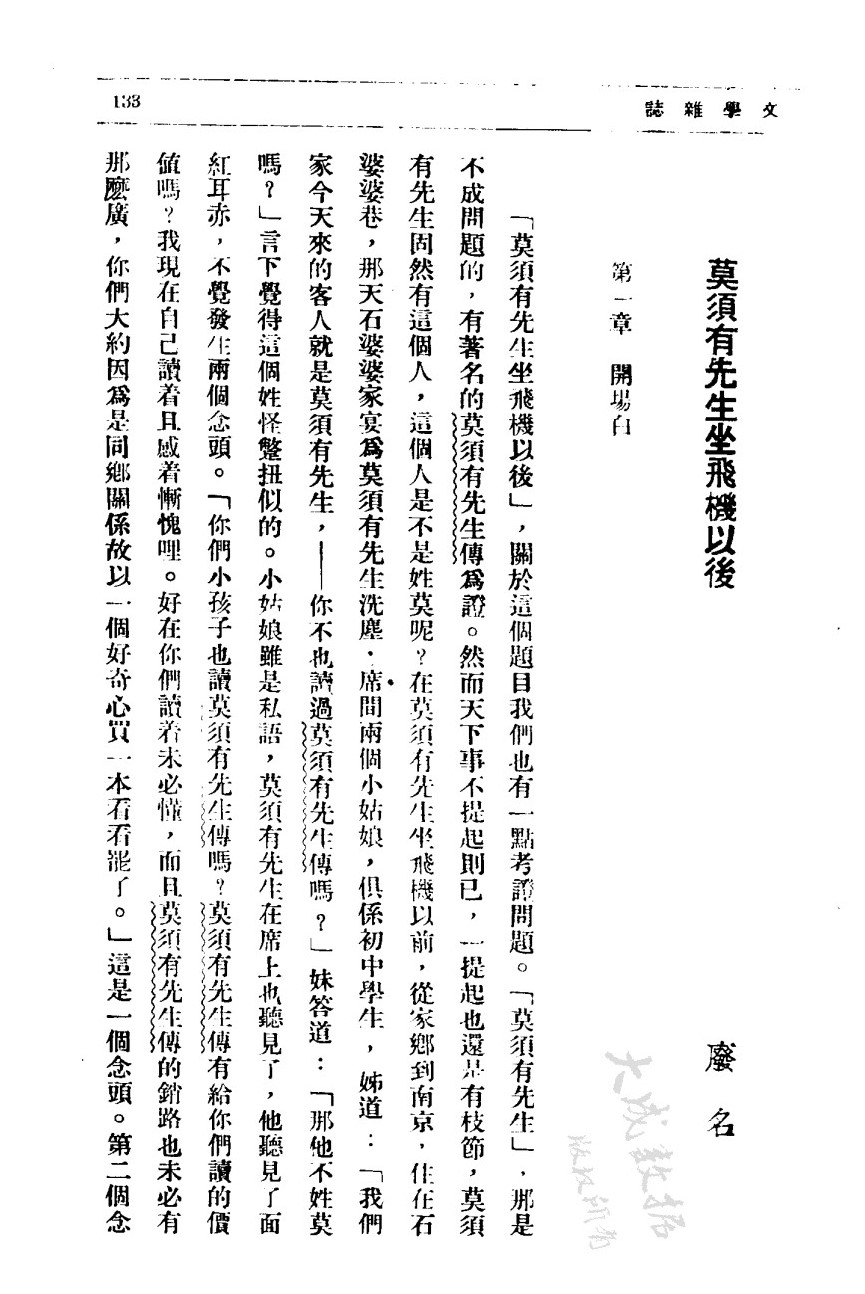 《莫須有先生坐飛機(jī)以后》“開場白” 初刊《文學(xué)雜志》1947年6月第2卷第1期