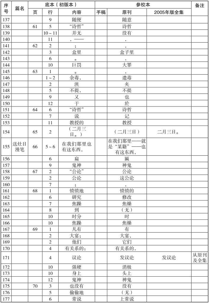 需要指出的是,以上幾例,雖然全集編者都改對了,但從??蔽墨I的角度講,這樣做是不妥的。至少,編者對于有改動的地方,需要加注說明,以使讀者能夠追溯。其實《魯迅全集》的日記卷就是這樣做的,對作者的手民之誤等加以校正時,在注釋中有說明。這種做法應(yīng)該推廣到其他各卷。