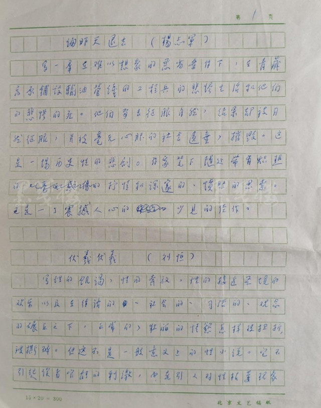 評(píng)語(yǔ)中的《海昨天退去》《伏羲伏羲》《少將》三個(gè)小標(biāo)題,正是當(dāng)年還是青年作家的楊志軍、劉恒與喬瑜參加此次文學(xué)新人初選階段的作品。根據(jù)上文提到的“初選名單”可知,除以上三種外,入圍初選名單的還有殘雪的《天堂的對(duì)話》、謝友鄞的《滋味》、格非的《青黃》等七部作品。包括汪曾祺、柯靈、茹志娟、袁鷹等在內(nèi)的評(píng)委所要做的,就是從這七部作品中選出自己鐘意的三部。顯而易見(jiàn),汪曾祺最終投了楊志軍、劉恒和喬瑜的票,這一宗資料即是明證。